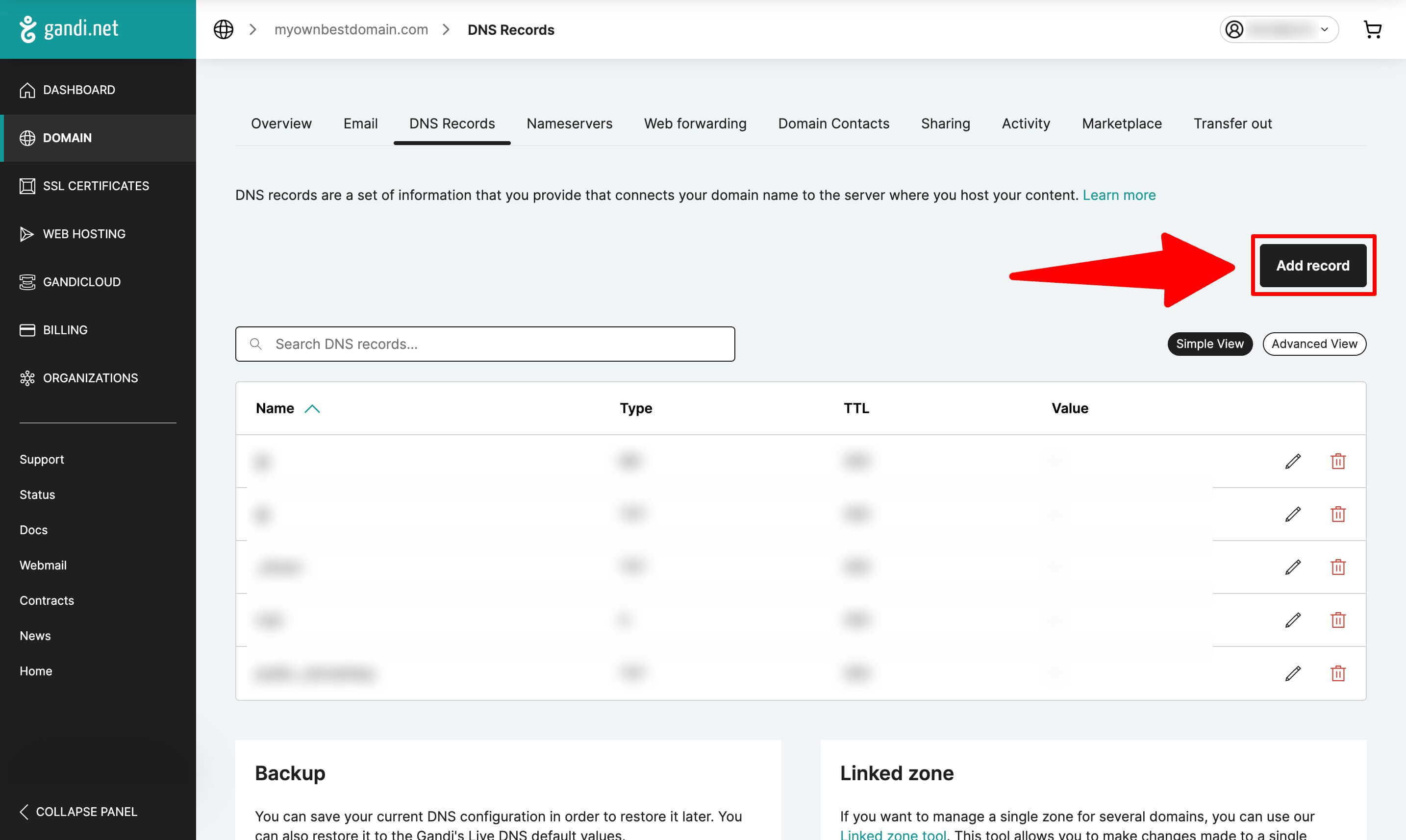 Full information about DNS records for your custom domain you can find on Custom Domains page. If you need more information, you can read instruction how to add custom domain.