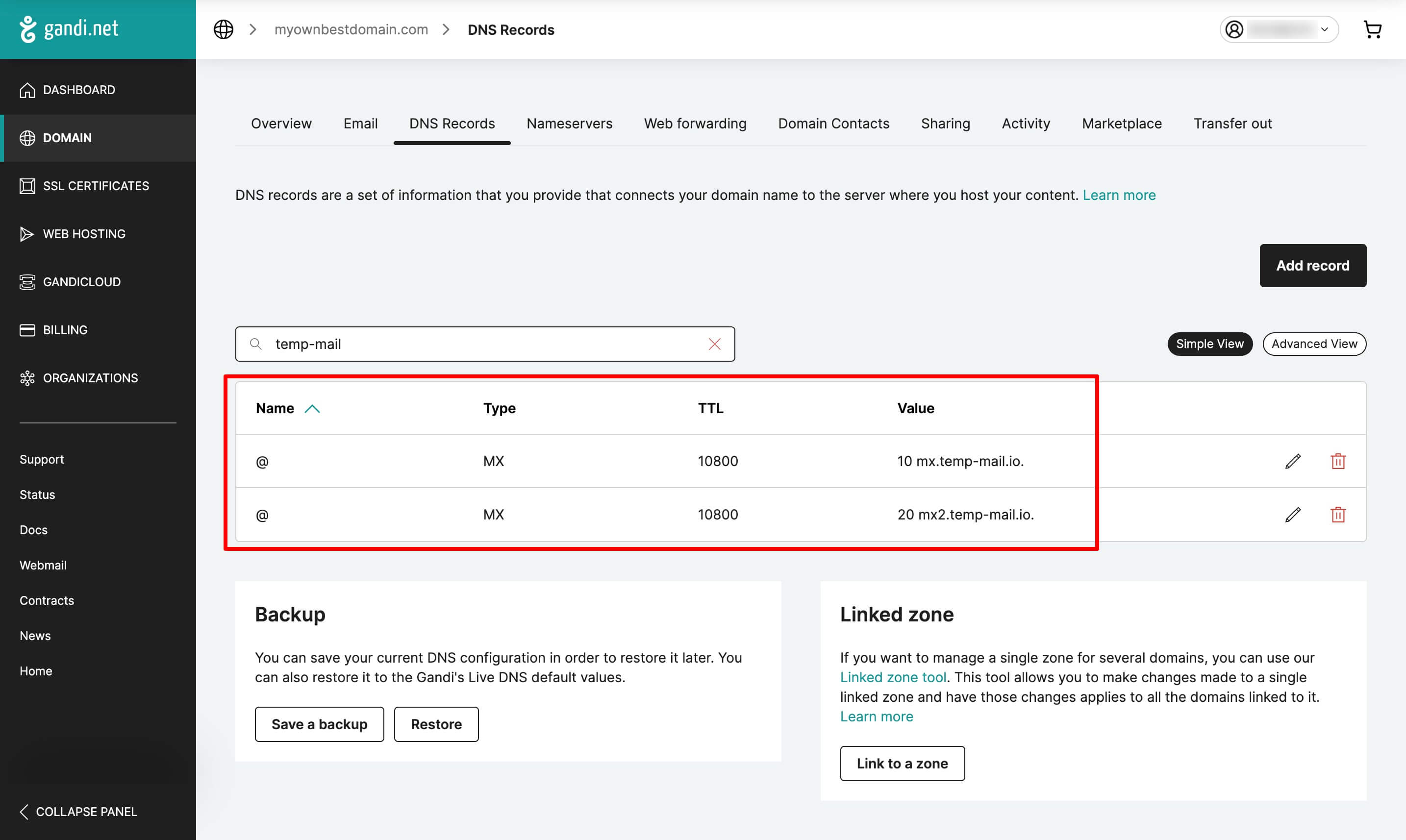 Done! You have configured your domain. Now you can use your custom domain for temporary email addresses.